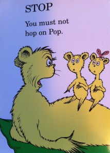 I think that because he now differentiates between the languages he speaks with me and Mike, Charlie probably understands that Dr. Seuss books are not the books that I can “read.” Charlie must subconsciously know the unfortunate truth: I dislike most Dr. Seuss books. There’s no mystery to my dislike as it’s actually very simple: Dr. Seuss books are very dependent on the (spoken) English words, making them impossible and foolish to translate. Phrases like “Hop on Pop” pose a problem: how would I translate that in Bisaya? “Ambak kang Papa,” I would insist on translating, much to Charlie’s confusion. “Stop, You must not hop on Pop” becomes “Undang, ayaw pag ambak kang Papa.” It is ridiculous, I know, but I do it, anyway, because I only read (and speak) to Charlie in Bisaya.