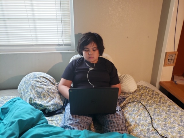 At 8:00, on the first day of distance learning, your Papa, ever the optimist, woke up early enough to make breakfast—bacon and eggs and pastries—and sing his silly “It’s a Beautiful Day” ditty. He even hand delivered breakfast to your assigned stations next to your beds.